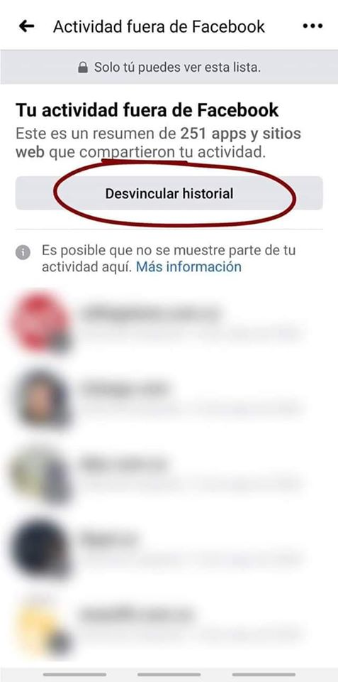 Para lo cual tendremos una ventana con un boton que dice: "Desvincular historial":